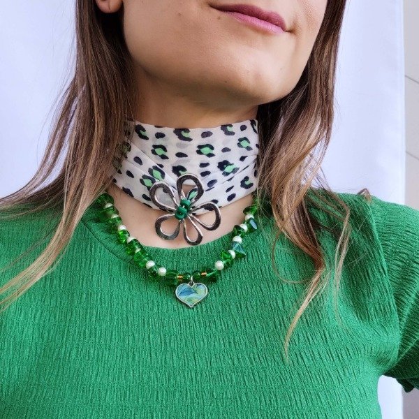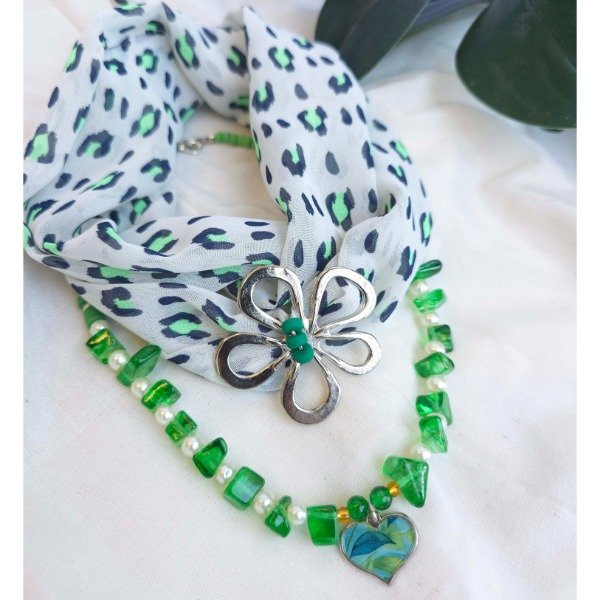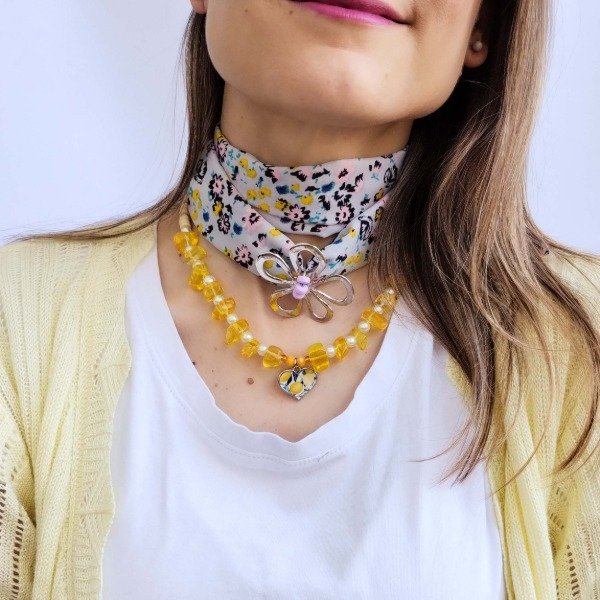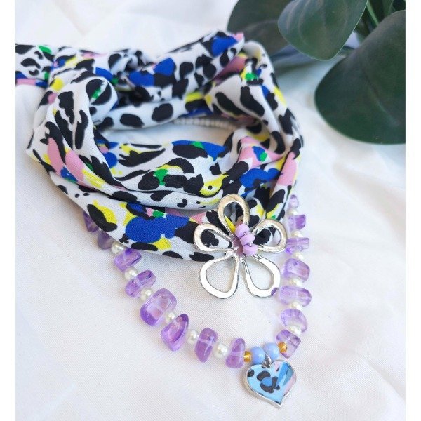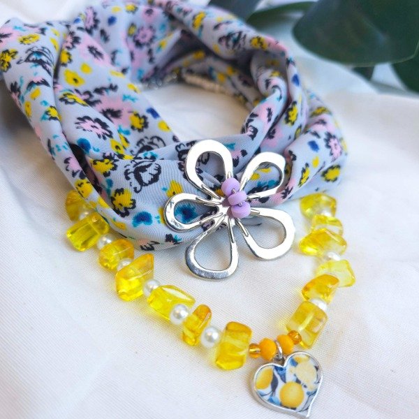 El conjunto Aleli incluye un Pañuelo largo con dije de Flor