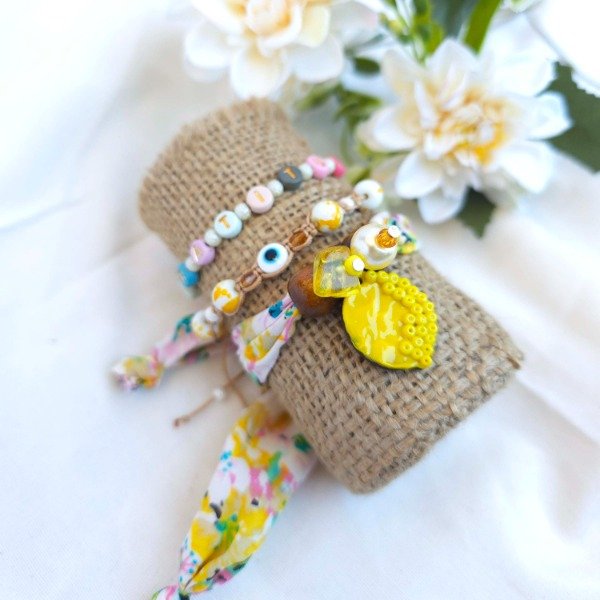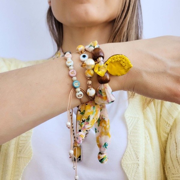 Incluye dos pulseras regulables y una de tela para atar y usar tipo pañuelito en la muñeca ♥