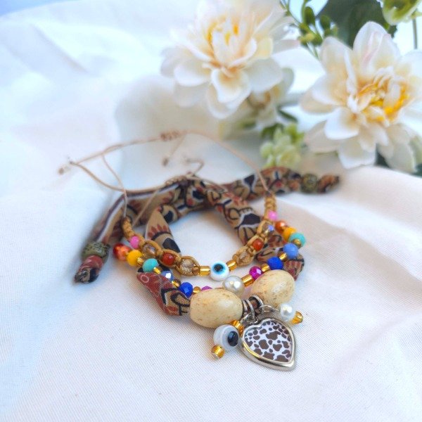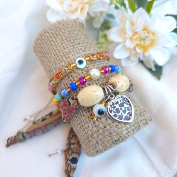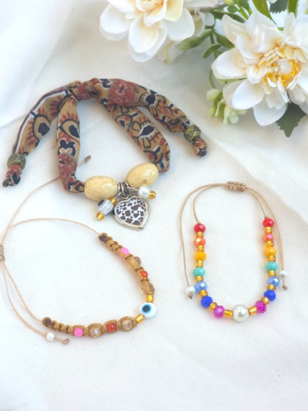 Incluye dos pulseras regulables y una de tela para atar y usar tipo pañuelito en la muñeca ♥
